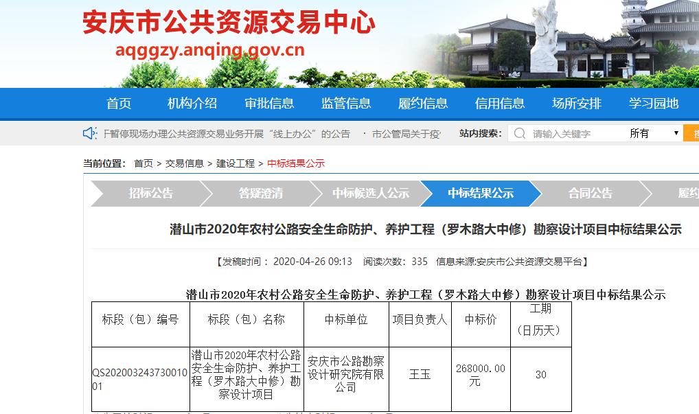 公司中标潜山市2020年农村公路安全生命防护、养护工程(罗木路大中修)勘察设计项目