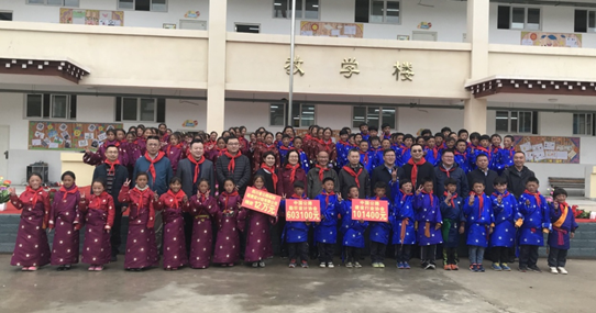 捐赠仪式上,洛若小学少先队员们为参加活动的领导和嘉宾佩戴了红领巾。
