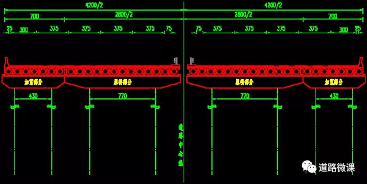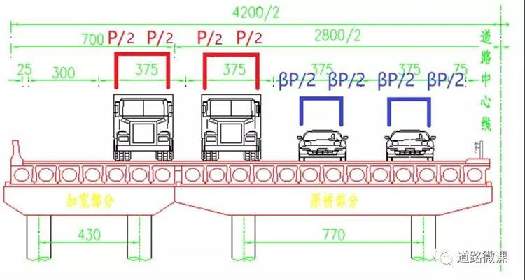1.按车辆类型在拼宽桥梁施行分车道交通组织管理,降低拼宽桥中既有桥梁的荷载效应。既有桥梁部分主要承担轻型车荷载,新建桥梁部分主要承担重型车荷载。